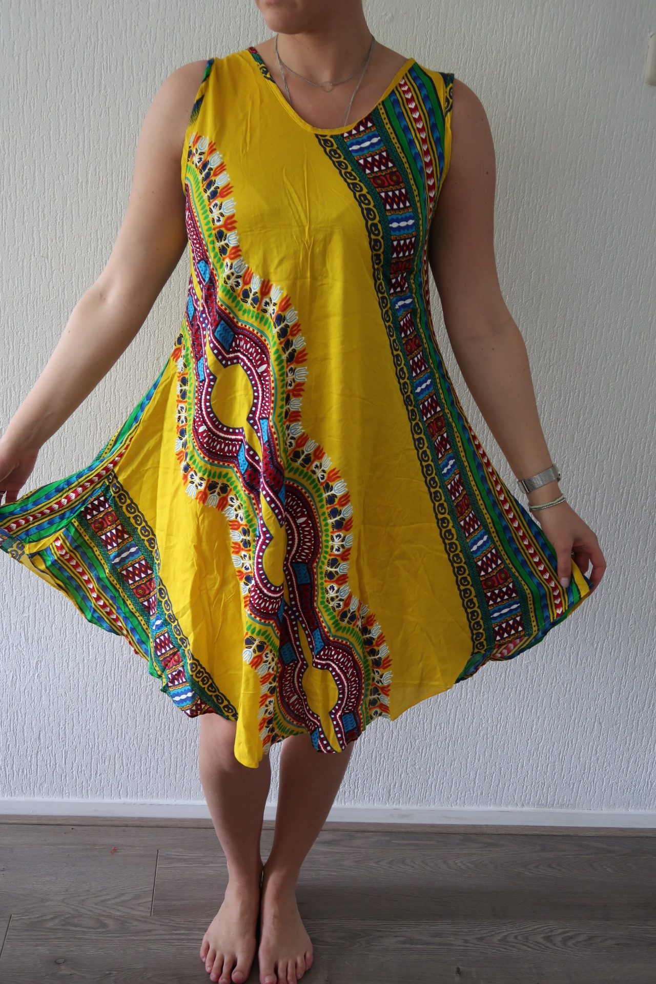 Luchtige zomerse jurk in Afrikaans design. De jurk is handgemaakt in Kenia.